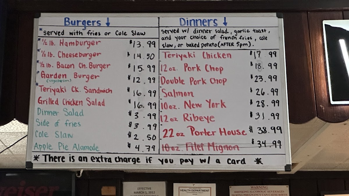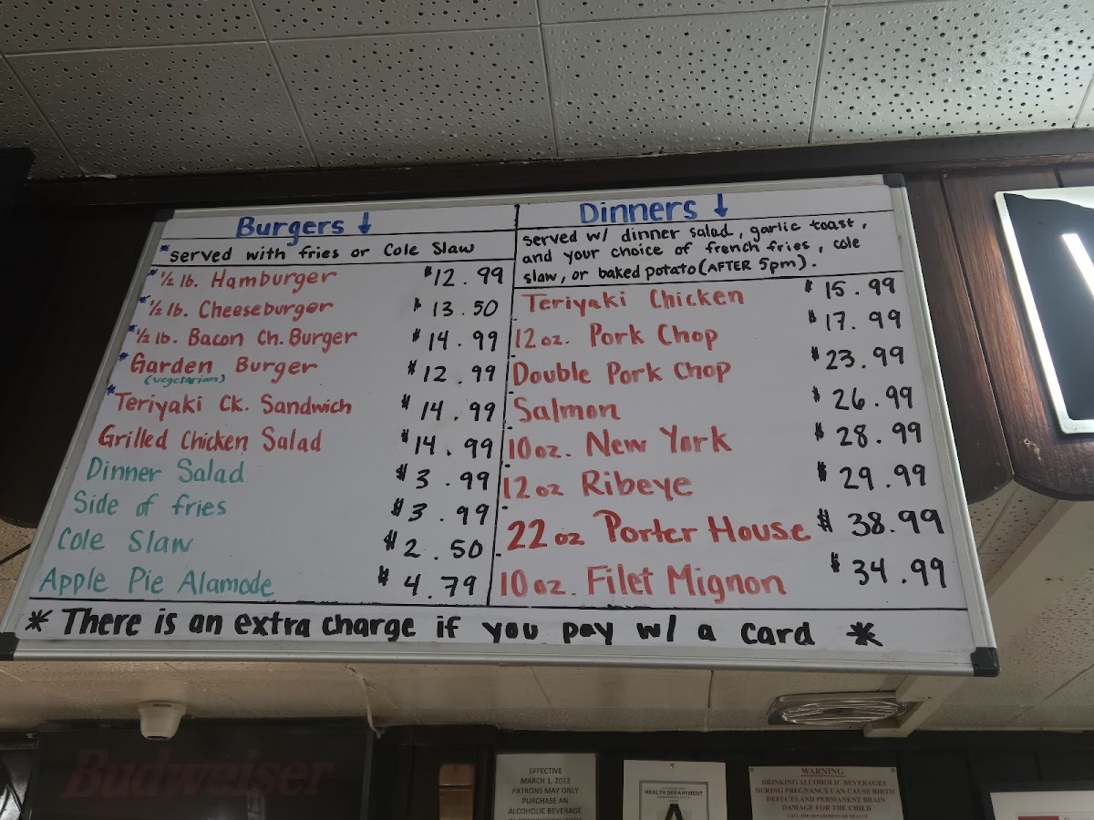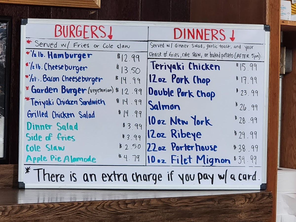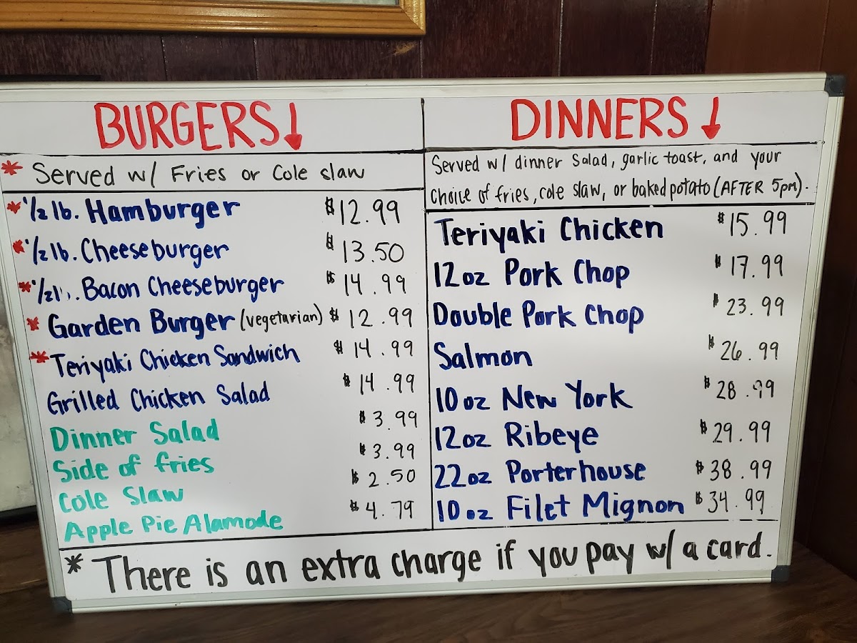 Served with dinner salad, slice of garlic bread, fries or baked potato (after 5 pm)