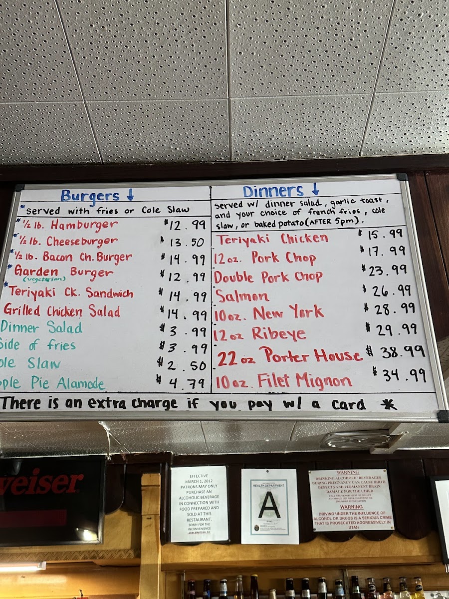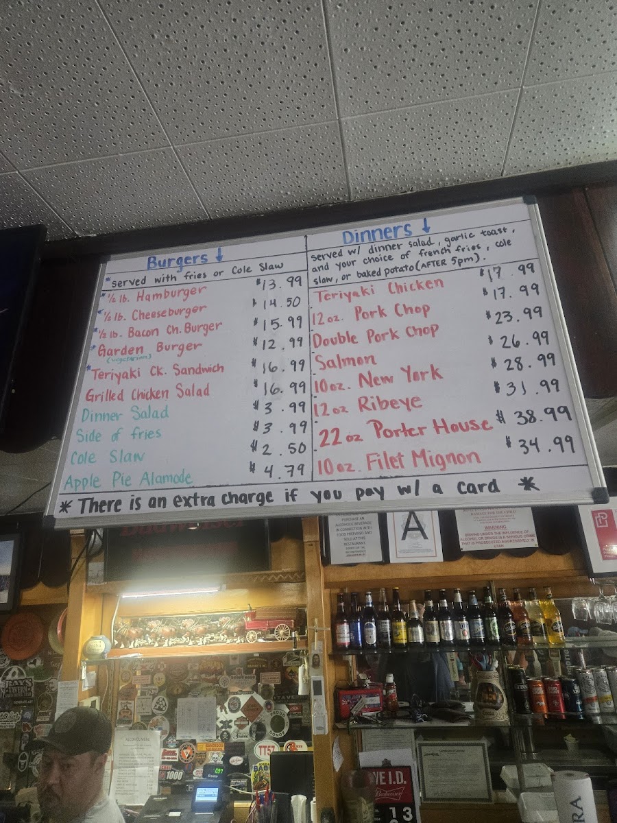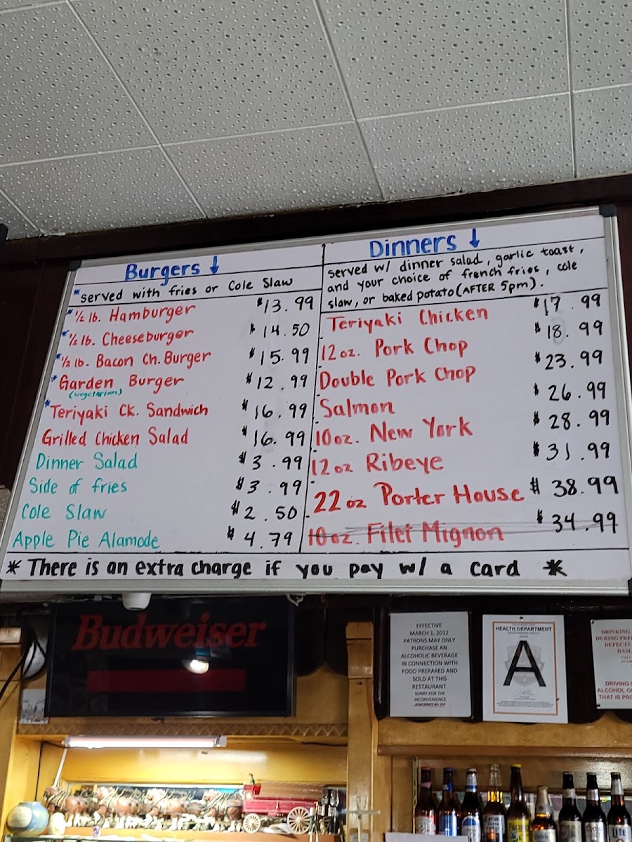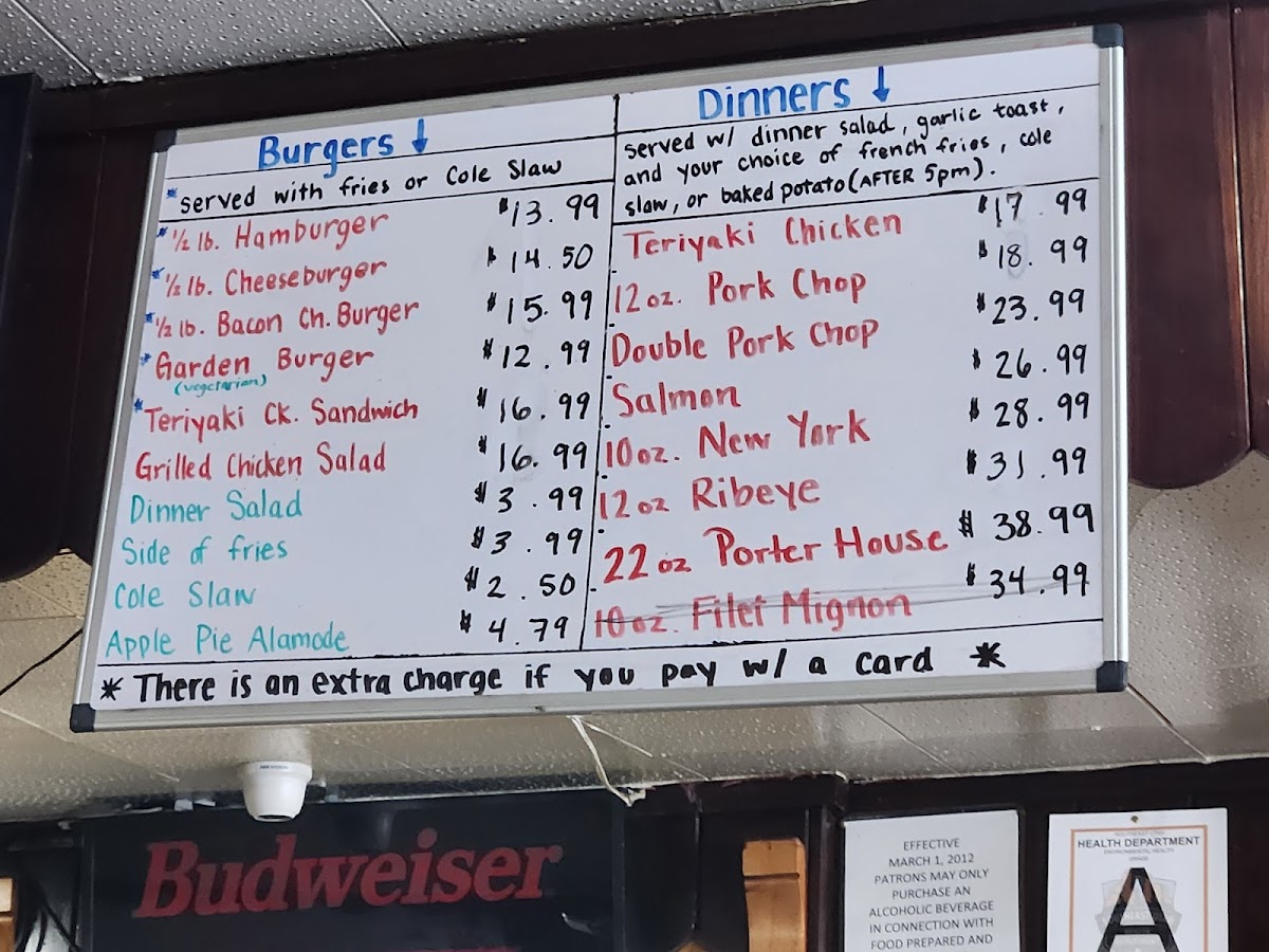 Served with dinner salad, slice of garlic bread, fries or baked potato (after 5 pm)